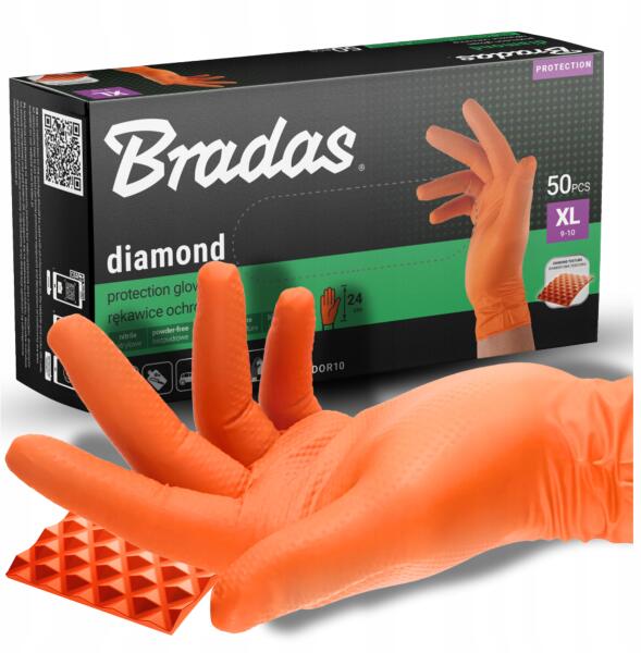Bradas Nitril kesztyű 50 db Diamond XL 9-10 csúszásgátló védő Bradas (RWJNDOR10)ALLEGRO