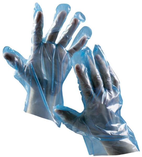 Élelmiszerekkel való rövid idejű érintkezésre alkalmas, polietilén fóliából készült, egyszer használatos kesztyű.