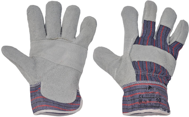 egyetlen darab marha hasított bőrből készült védőkesztyű bélelt tenyér, textil kézfej és mandzsetta, hüvelykujj és körömvédő