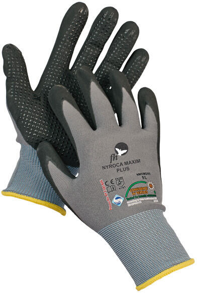 Mikroporózus nitrilbe mártott nylon / lycra kötött kesztyű, nitril célpontok a tenyéren és az ujjakon, kiváló légáteresztő képesség, nagyon jó tapadás nedvesen, olajos és száraz környezetben.