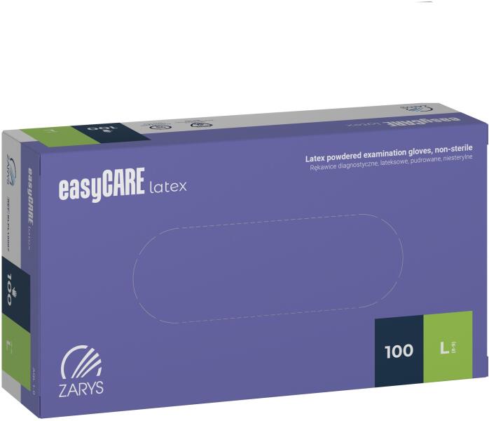 Az easyCARE latex eldobható kesztyű hatékony kézvédelmet nyújt a diagnosztikai eljárások során. Természetes latexből készül. Univerzális forma,  mikrotextúrázott felület.
