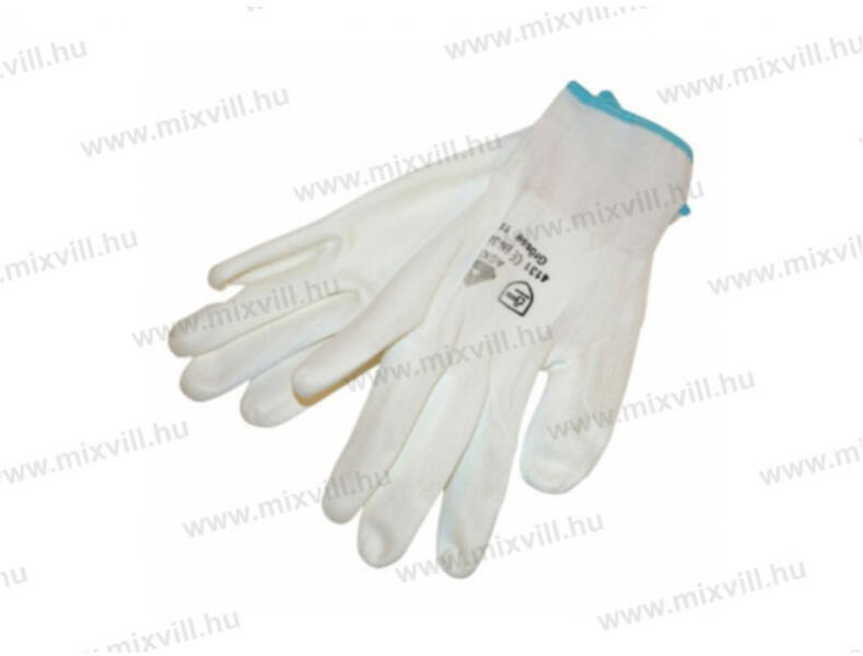 Extol 865103 Kötött kesztyű fehér nylon, XL-es méret, 10` poliuretánba mártott teny. és ujjhegy. , gumírozott mandzsetta Poliuretánba mártott tenyér és ujjhegyKötött kesztyű fehér nylon poliuretánba mártott tenyérrésszel és ujjhegyekkel, gumírozott mandzsettávalEgyarant alkalmas száraz és nedves alkatrészek kezeléséhez. Alkalmazási területek: