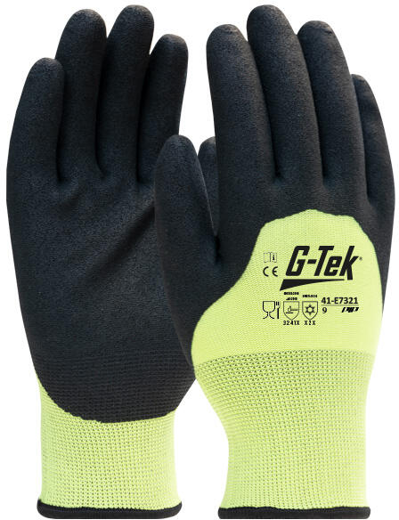 Kinti és hidegben végzett munkálatokhoz. Bélés anyaga: akril. PVC bevonat a tenyéren és a kézfejnél. Jól láthatósági sárga és fekete színben.