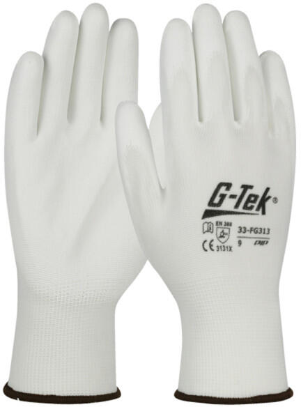 G-Tek G-TEK kötött, PU tenyérmártott, poliészter munkavédelmi kesztyű - Fehér - 06/XS (GTEK-33-FG313-6)