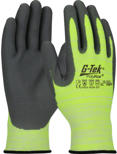 G-Tek G-TEK PolyKor kötött, nitril mártott munkavédelmi kesztyű - Szürke/Sárga - 09/L (GTEK-16-323-EN-9)
