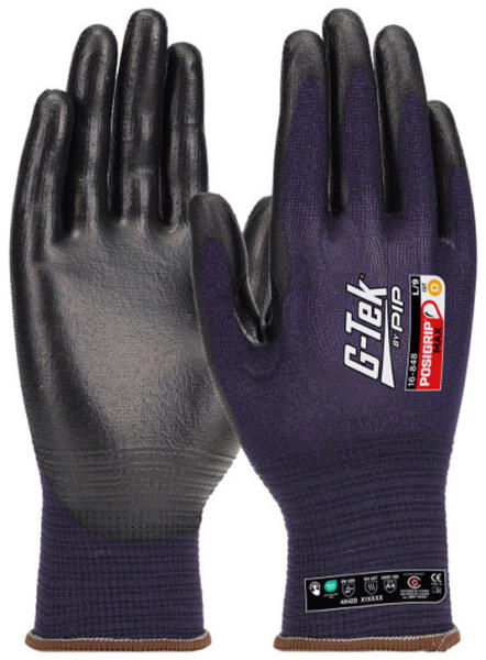G-Tek G-TEK PosiGrip MAX 18G kötött, HPPE/nylon/spandex, PosiGripMax tenyérmártott munkavédelmi kesztyű fekete/lila 09/L (GTEK-16-848-9)