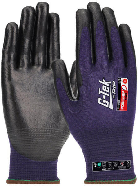 G-Tek G-TEK PosiGrip MAX 18G kötött, HPPE/nylon/spandex, PosiGripMax tenyérmártott munkavédelmi kesztyű fekete/lila 09/L (GTEK-16-868-9)