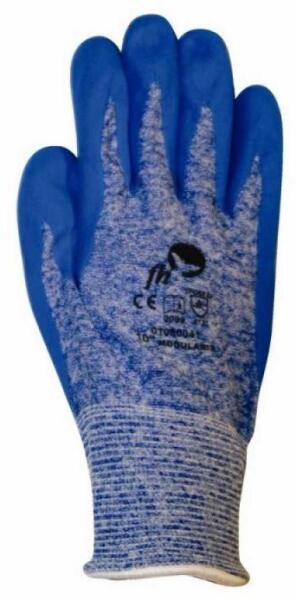 Varratmentes kötött nylon kesztyű nagyfokú olajlepergető képességet biztosító nitrilréteggel a tenyéren és az ujjakon.