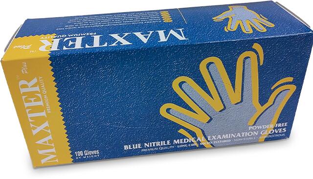 Maxter hosszúszárú (290mm) nitril púdermentes vizsgálókesztyű (5, 7 g) - 100 db - Kék - M