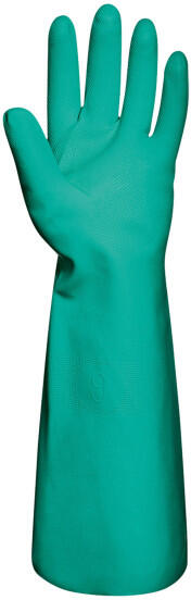 Vegyszerálló nitril és latex gumiból készült kesztyűBiztonságos és rugalmas: Ez a kesztyű 0,58 mm vastag nitrilből és latex gumiból készült, 45 cm hosszú. Kiváló vegyszerállóságot és rugalmasságot biztosít, ideális választás élelmiszerek kezeléséhez is. Főbb jellemzők:Anyag: 0,58 mm vastag nitril és latex gumi, amely kiváló vegyszerállóságot és rugalmasságot biztosít. Hossz: 45 cm, amely megfelelő védelmet nyújt a kar számára is. Bolyhos bélés: Kényelmes viseletet biztosít, és megőrzi a kesztyű formáját. Érdesített felület: Kiváló tapadást biztosít nedves és száraz körülmények között is. Vegyszerállóság: Kiváló védelmet nyújt a különböző vegyi anyagokkal szemben. Élelmiszer-kezeléshez alkalmas: Biztonságosan használható élelmiszerek kezeléséhez. Szabványoknak megfelelő: Megfelel az (EU) 2016/425 rendeletnek, biztosítva a magas szintű védelmet és minőséget. Ez a vegyszerálló nitril és latex gumiból készült kesztyű tökéletes választás mindazok számára, akik megbízható és tartós védelmet keresnek vegyi anyagokkal való munkavégzéshez. A kiváló minőségű anyagok és a speciális kialakítás biztosítják a hosszú távú kényelmet és védelmet.