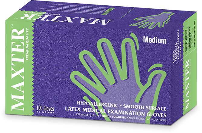 Supermax Maxter orvosi, enyhén púderezett, latex vizsgálókesztyű (5, 5 g) - 100 db - Fehér - M